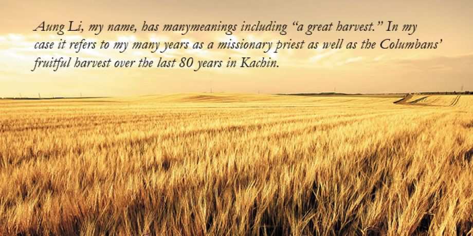Aung Li, my name, has many meanings including “a great harvest.” In my case it refers to my many years as a missionary priest as well as the Columbans’ fruitful harvest over the last 80 years in Kachin. Rose, one of my new sisters, explained that it can also mean a “welcoming bush” which could refer to the little mustard seed that becomes a bush for the birds of the air. So, no shortage of symbolism!