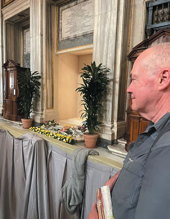 Meanwhile, back on our travels, we continued to find ourselves one step ahead of “Pope Bob.” Incidentally, it hadn’t been lost on me that, not only had the new Pope been a friend and collaborator of Pope Francis, but he’d also been a missionary at the same time and in the same country as myself—Peru. On Saturday, May 10, we decided to join the multitudes praying at the tomb of Pope Francis in Rome’s Basilica of Santa Maria Maggiore. As we were leaving, we noticed the police closing off the approach road to traffic. Soon, a small cavalcade arrived, escorting none other than the new Pope, who was coming to pay his respects at Pope Francis’s tomb. We’d beaten him to it by 40 minutes!