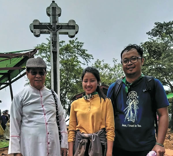 The rain was not very helpful, because it made the road very slippery, muddy and wet. On the way to the top of the mountain, the young people went through the Youth Cross Walk which is a contextualized Stations of the Cross. At every station, the young people reflected and prayed for the different “crosses,” struggles and challenges that young people identified themselves. They are the crosses that young people carry everyday of their lives. These includes the conflict/war in Kachin, violence against women/children, youth in conflict with the law, child labor, climate change and pollution, internal displacement, poverty, mental health, human trafficking, lack of access to quality education, access to decent employment after graduation, broken families, drug addiction and HIV/ AIDS infection, teenage pregnancy, and abortion.