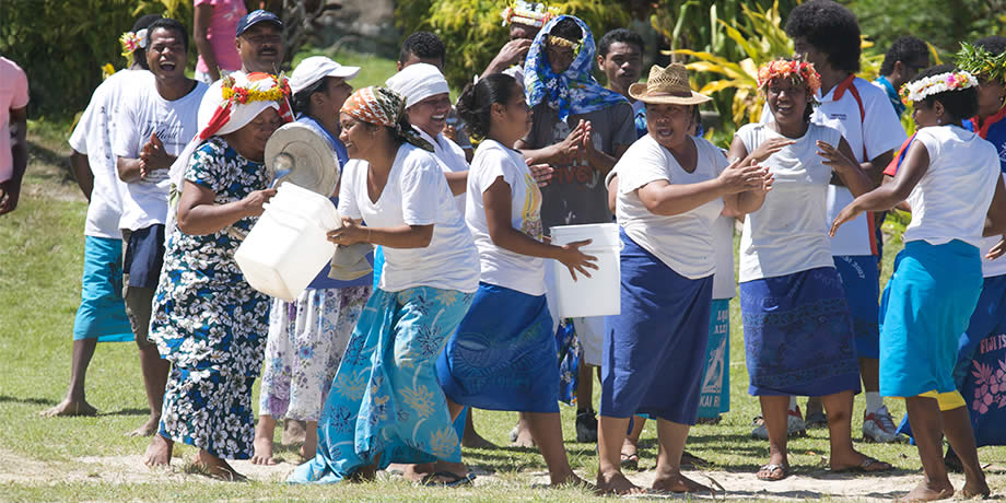 The two games are played with much good humor, chanting of slogans and cheering from the participants. A remarkable thing about the two games, from the point of view of a non-Fijian, is that immediately after the game the winners assemble a stock of clothes and tie them to long bamboo poles. They then proceed in formation to where the losers are seated shouting derisive insults and mocking them about their ability. Then the captain of the winning team gathers the poles together, chooses one and presents it to the captain of the losing team. When he or she has formally accepted them, the clothes are distributed among the losers.