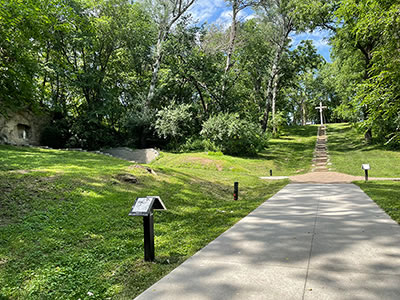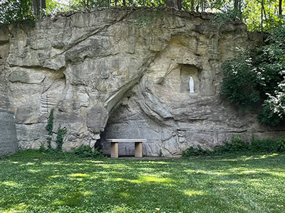 Our recently renovated grotto has two walking paths featuring Stations of the Cross and Stations of the Resurrection. The grotto area can also be used for private prayer or religious services.
